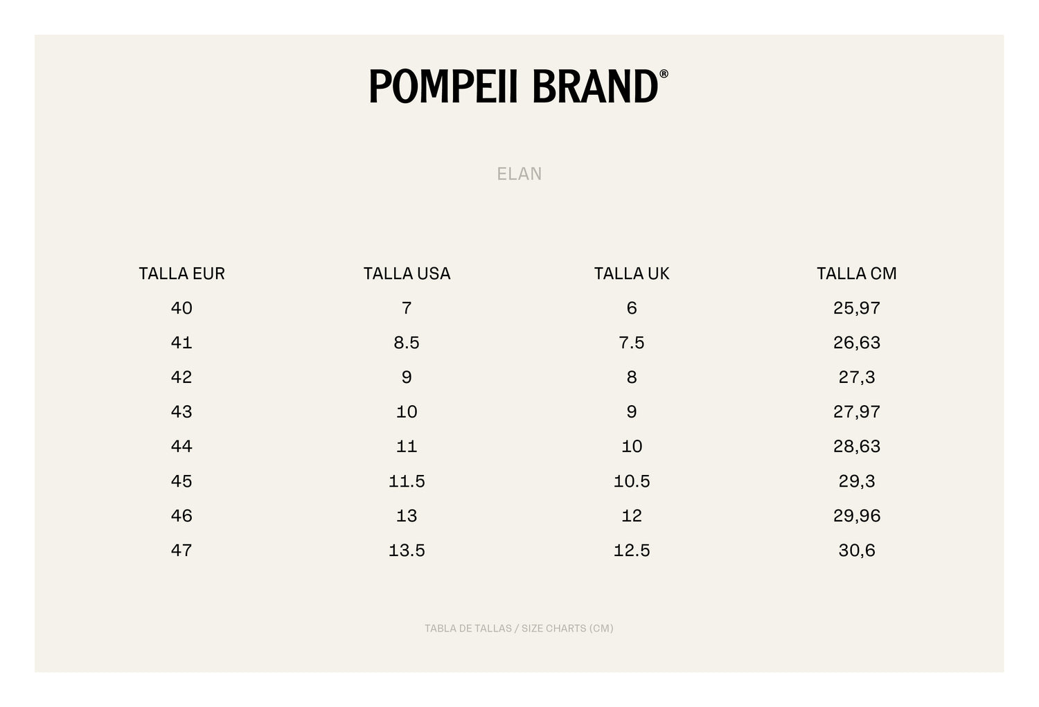 SIZE CHART: